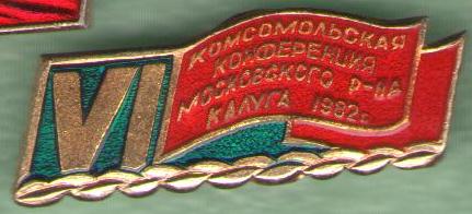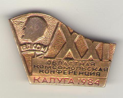ХХХ-я городская комсомольская конференция г.Калуги. Не знаю на сколько правда, но говорят,что этот знак сделали, но не выдавали, т.к. не понравился портрет вождя, что похоже на правду портрет в самом деле "не очень".