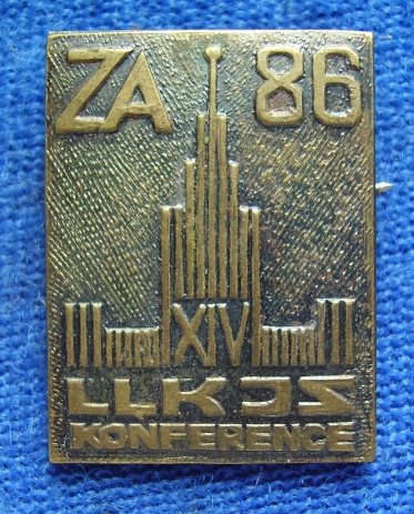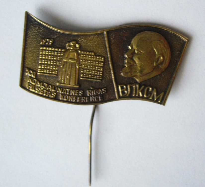 На знаке написано VLKJS - ВЛКСМ, обычно пишут LLKJS - ЛКСМ Латвии.