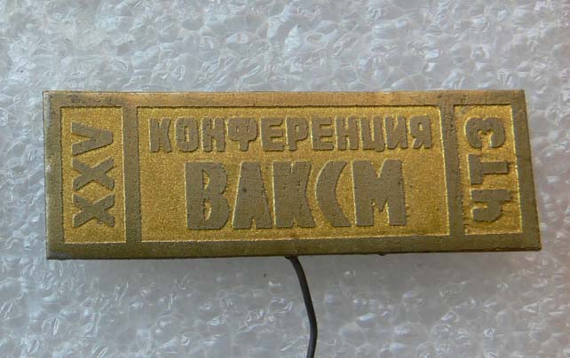 На заводе могут быть только подразделения одной организации: по цехам, производствам. Каждое из подразделений могло выпускать знаки к своим конференциям (примеры на ВАЗе, других крупных предприятиях). Но названия производств на знаке обычно указывались. То же (обычно) когда знаки выпускаются, как представительские от организации, на районные и другие конференцииBaumanets писал(а) :Ну еще в качестве версии, на заводе могла быть больше одной комсомольской организации.