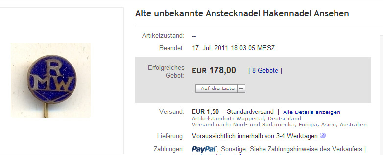 Михаил, кстати у Хюскена он есть. Правда среди неопознанныхzambr26 писал(а) :Тема на значке до боли знакома. Думаю Reichs Lebensmittel. Но у Хюскина не нашёл. Что думаете? Ранний послевоенный?