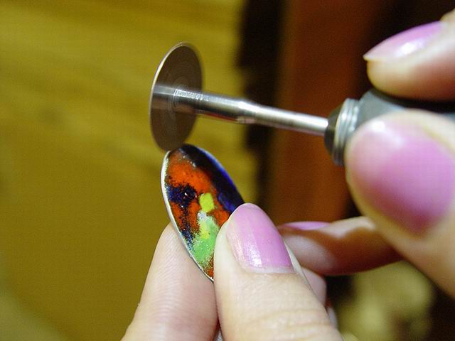 Количество обжигов НЕ зависит от количества цветов эмали, ни в коем случае. Обжиг ведется НЕ при температуре 900 градусов - при таких температурах 95% процентов эмалей выгорают. Эмаль , перетертая до состояния порошка, разводится ТОЛЬКО водой и ни чем иным. Если эмаль вспучилась пузырями, а изделие имеет неприглядный вид, то это БРАК, который не исправить никаким шлифованием.