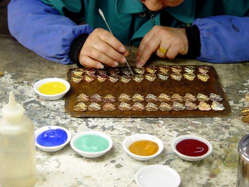 Все производственные процессы в технологии горячих эмалей производятся вручную.