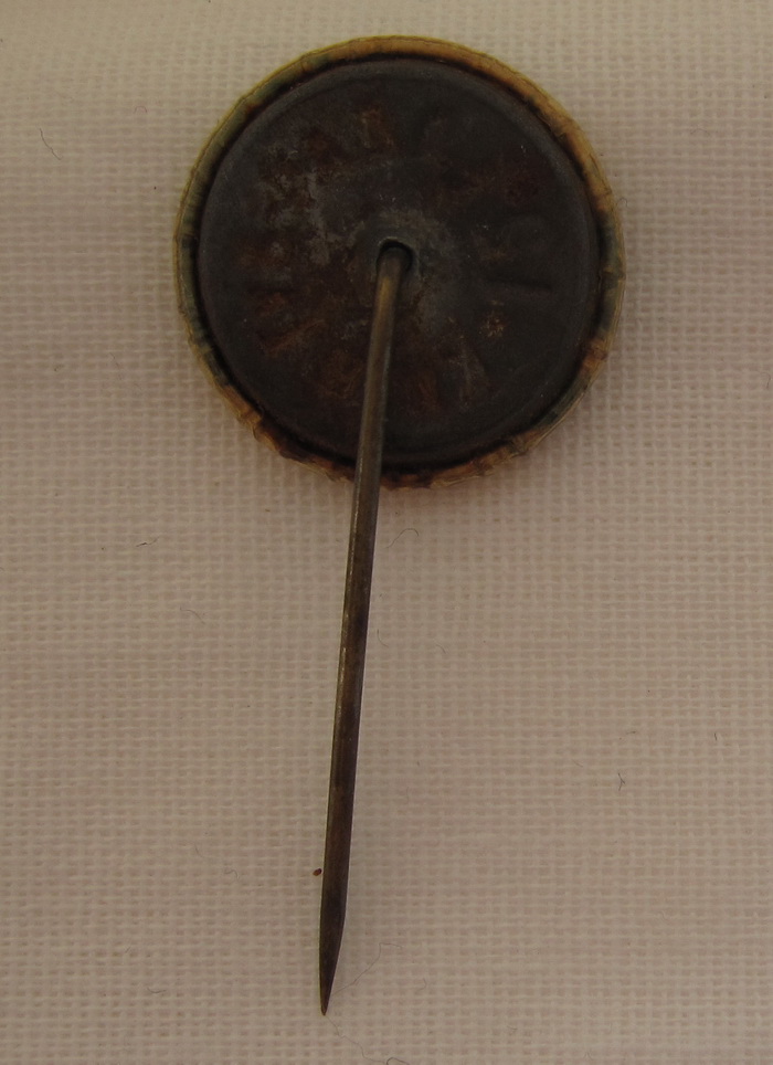 Дореволюционный закатный значок с изображением моего прадеда. Поскольку он с семьей жил в Риге, то и сделан значок был, видимо, где-то там. А может, на той самой эстонской фабрике, если других фабрик поблизости тогда не было?