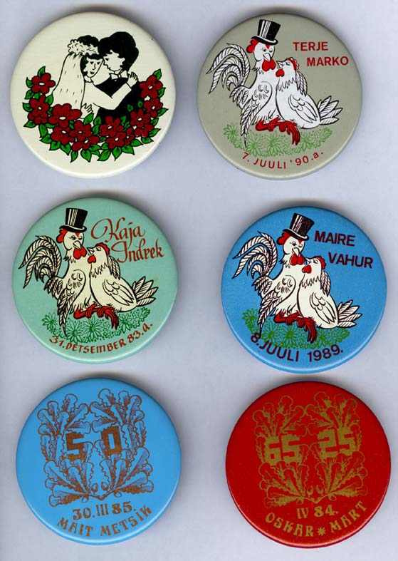 Достаточно не обычный закатной значок из Эстонии. Вместо прозрачной пленки и бумаги используется ткань. На ткань нанесен рисунок типа неклейки.