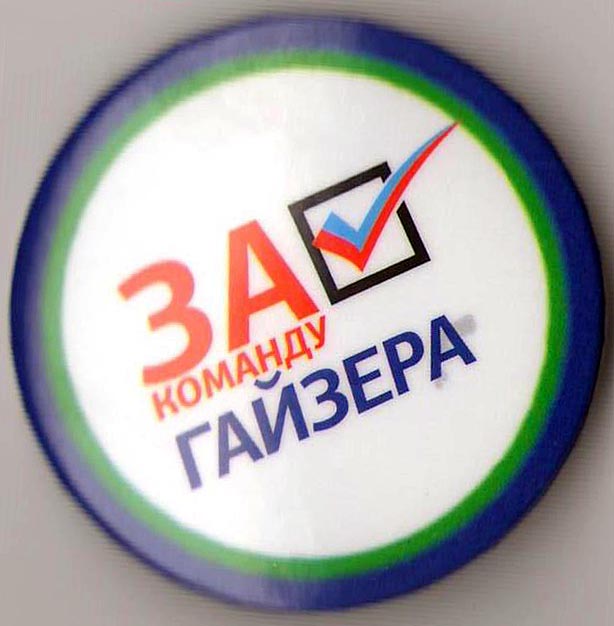 Агитационный значок "За команду Гайзера" (выборы Главы Республики Коми, 2014).