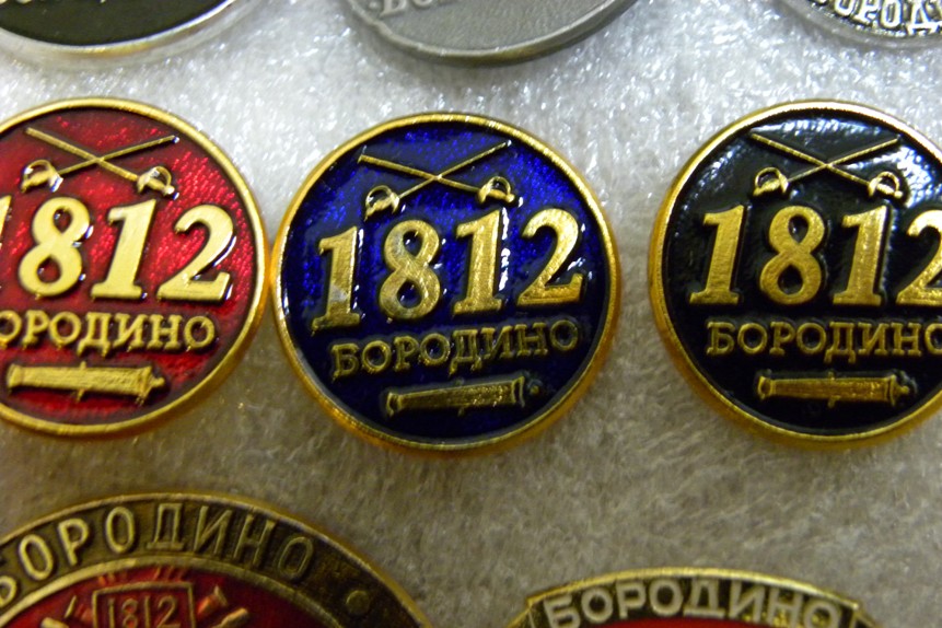 1. Знак, выдававшийся делегатам Съезда потомков российских героев Отечественной войны 1812 года, проходившем 4 июня 2012 г. в конференц-зале гостиницы "Бородино" в Москве. Несмотря на то, что само Общество потомков участников войны 1812 года существует в нашей стране уже полвека, такое мероприятие проводится впервые. В нем состоят как потомки генералов и офицеров, так и простых солдат (последних меньше, т.к. сложно документально проследить и доказать участие простого солдата в этой войне).
