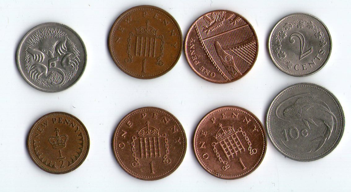 Предлагаются следующие монеты: Великобритания: 1/2 пенни 1975, 1 пенни 1974, 1990, 2002, 2009