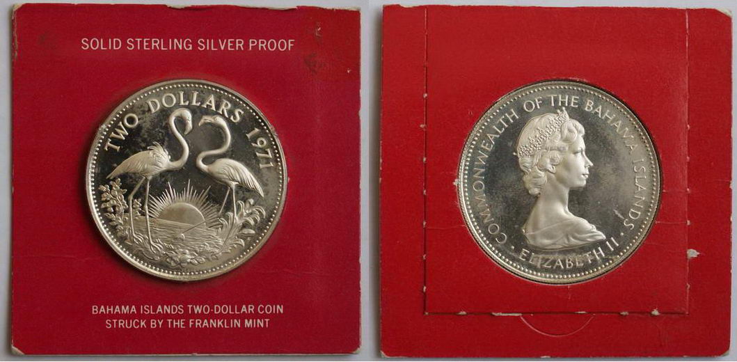 Багамские о-ва, 2$,1971г., 925, 29.8гр. 1800руб.