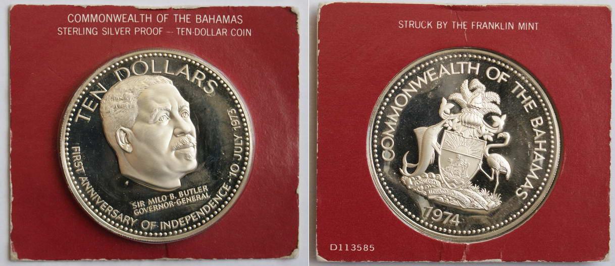 Багамские о-ва, 10$,1974г., 925, 50.42гр. 2700руб.