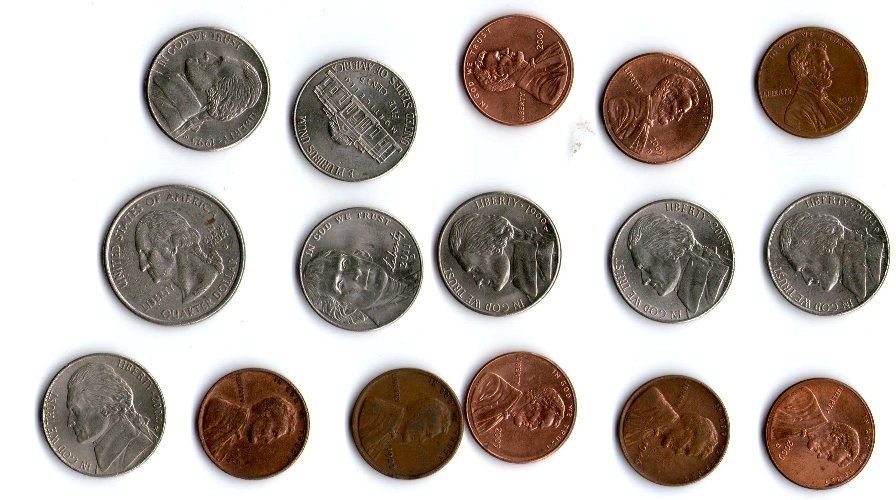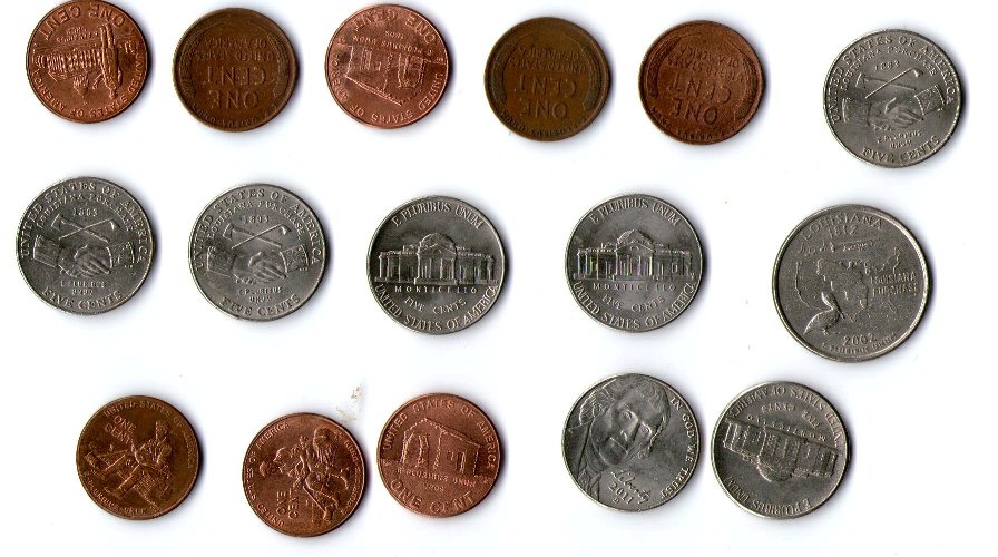 5 центов 1995, 1999, 2 новых 2011, 3 памятных (приобретение Луизианы) 2004