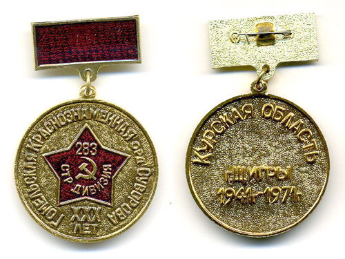 Существует. На подвеске надпись 49 ГСХКОСД (49 гвардейская стрелковая Херсонская Краснознаменная ордена Суворова дивизия.)