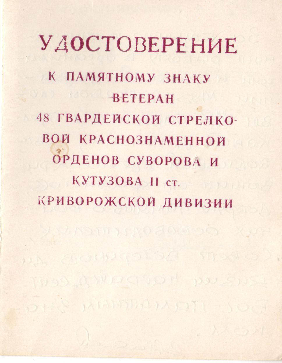 Освобождение УССР 1942-44 гг. ( ветеранские знаки, удостоверения к знакам частей и соединений ).