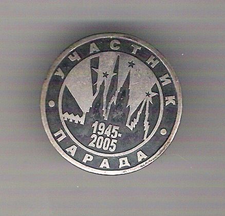 Представленный Вами экземпляр, кстати, весьма хорош!VaLeriy 51 писал(а) :Еще один значок,участник парада 2005 года,мельхиор.