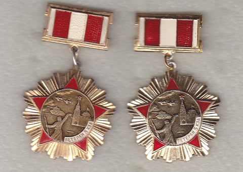 Попалось два знака Ветерана 5 КЗА. А надписи на обороте разные. Может, есть еще и другие разновидности?
