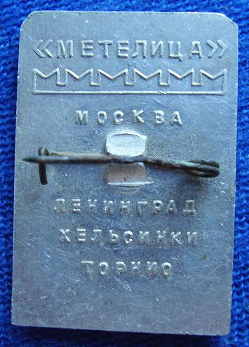 Так вот. Этот значок посвящен лыжному марафону (Москва-Ленинград-Хельсинки-Торнио), который совершила команда советских лыжниц "Метелица".