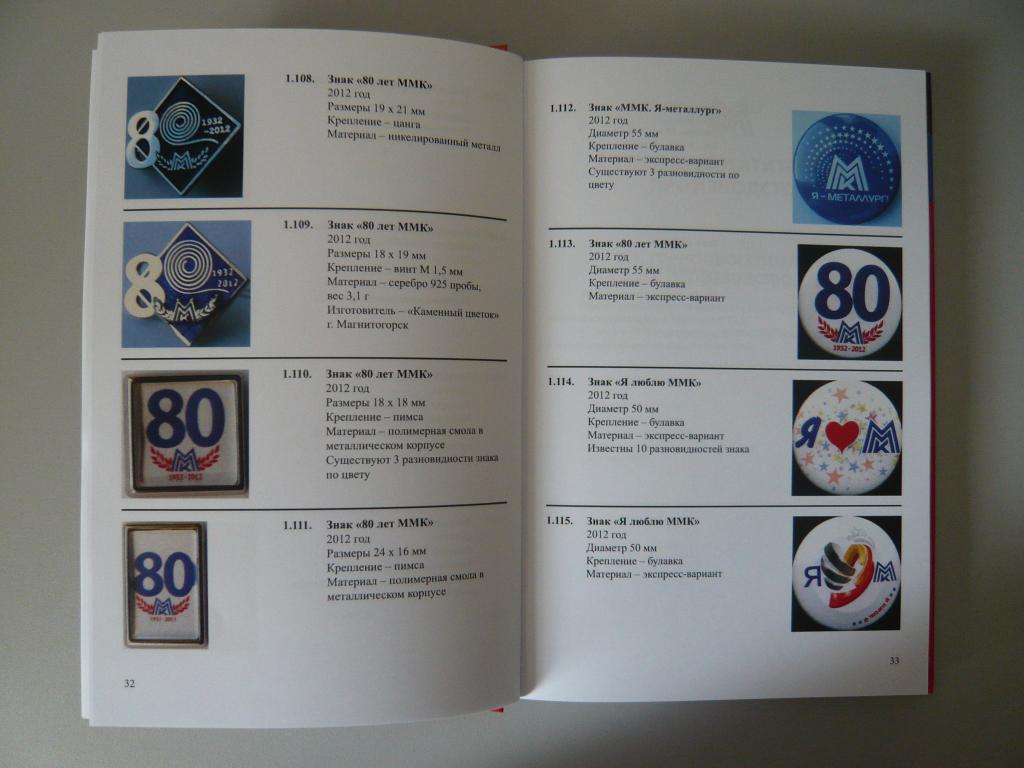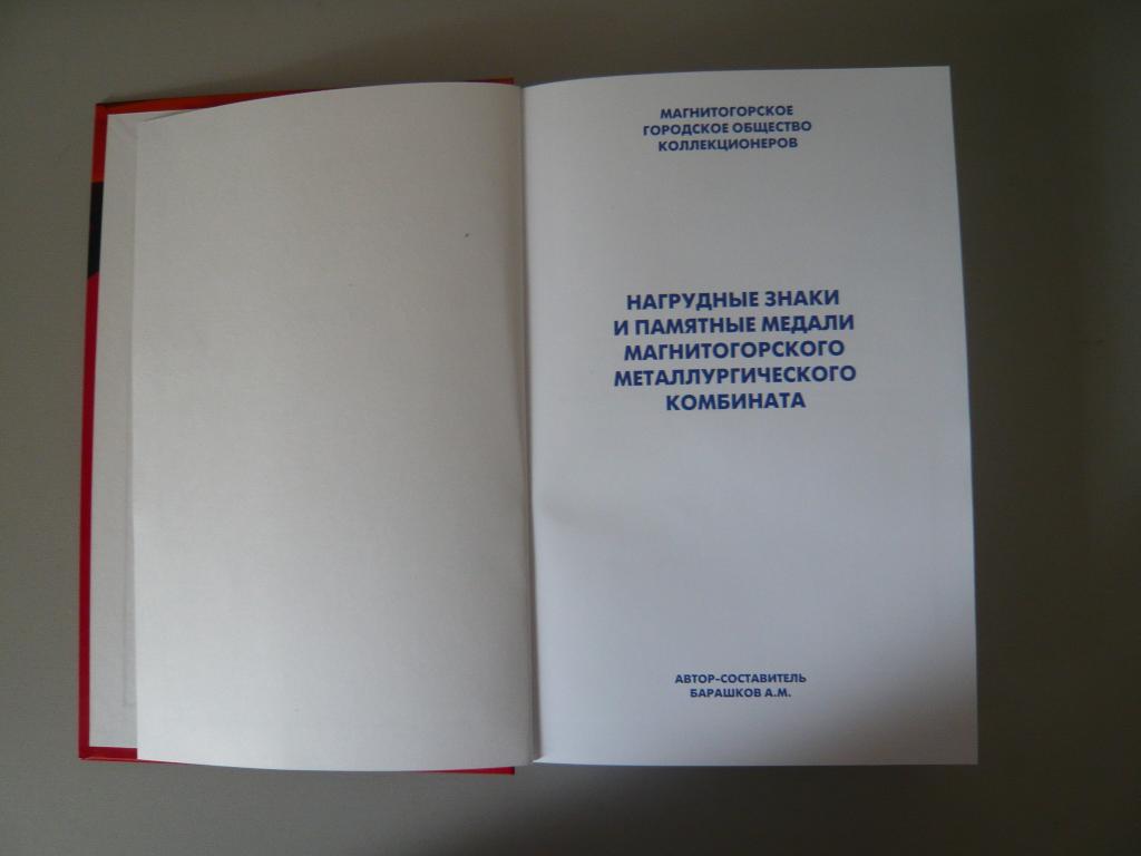 Каталог "Нагрудные знаки и памятные медали Магнитогорского металлургического комбината". Автор-составитель - А.М.Барашков. 252 страницы с цветными иллюстрациями в твёрдом переплёте. Размер 220 х 150 мм. Описано более 900 знаков. Выпущен в 2014 году тиражом 50 экземпляров. Интересен краеведам, фалеристам, интересующимся темами "Металлургия", "Машиностроение", "Энергетика"и др. Автор готовит к изданию 2-й том, в который войдут городские знаки Магнитогорска.