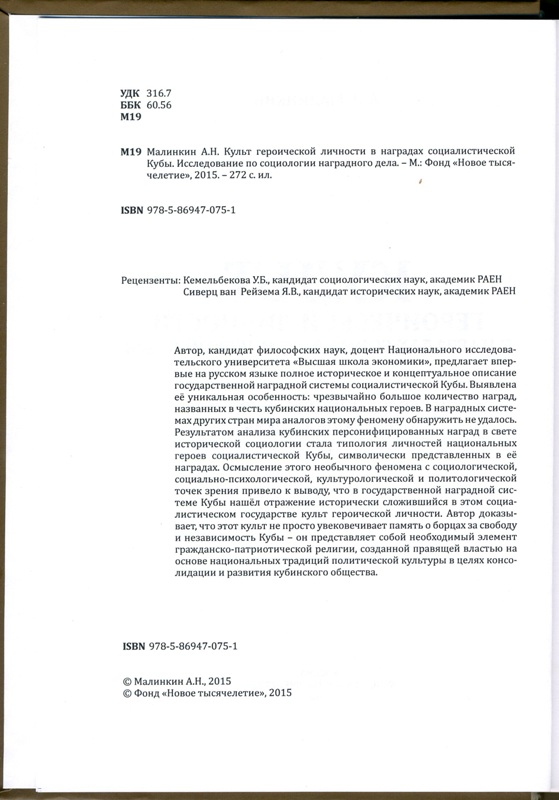 Re: Книга " Культ героической личности в наградах Социалистической Кубы. Исследование по социологии наградного дела ".