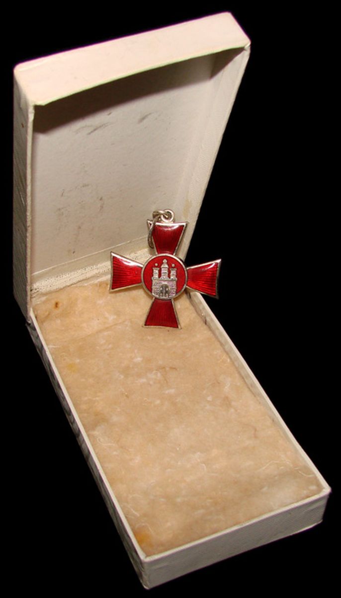 Ганзейский крест города Гамбурга для участников ПМВ в оригинальном наградном футляре.