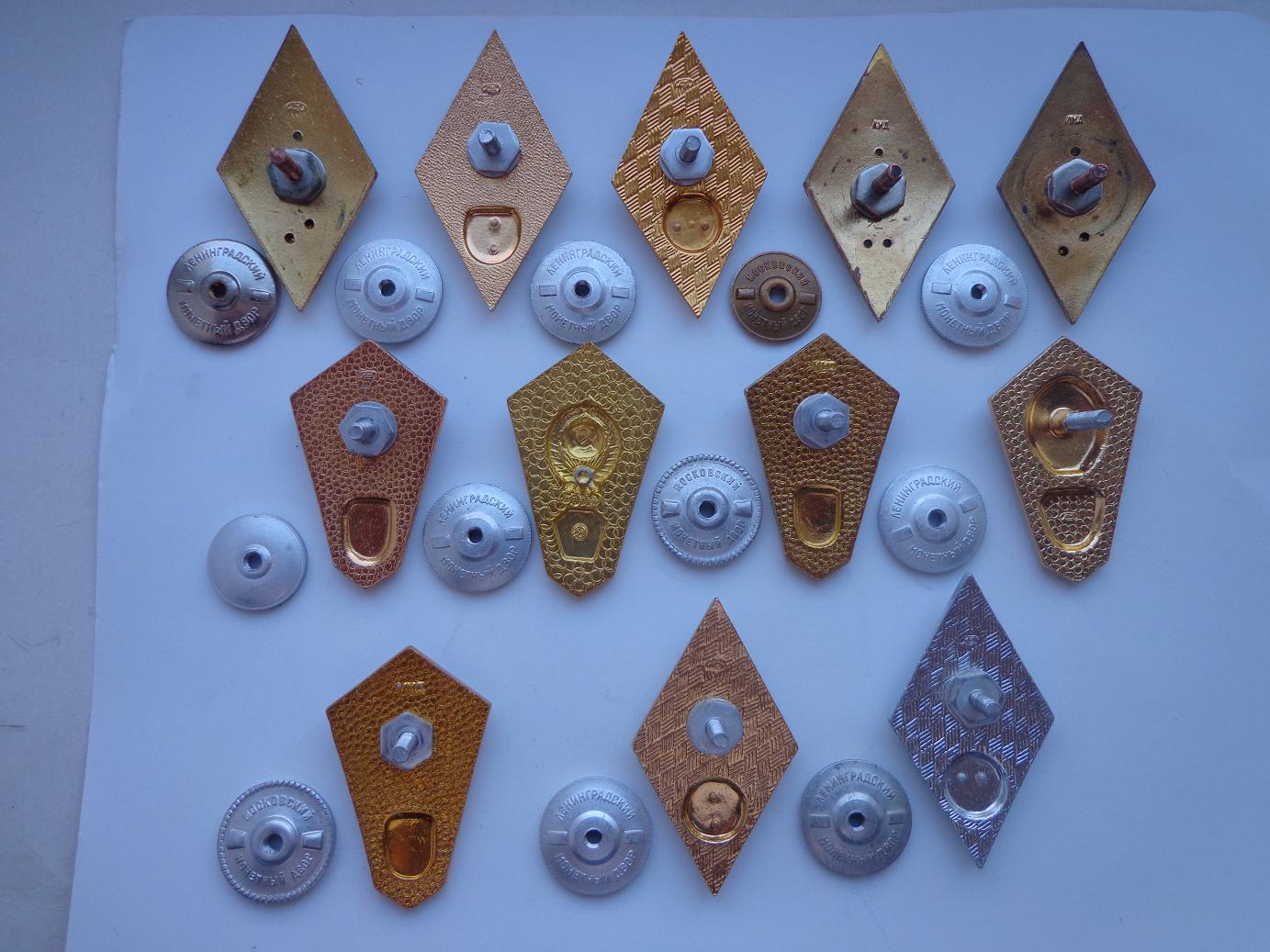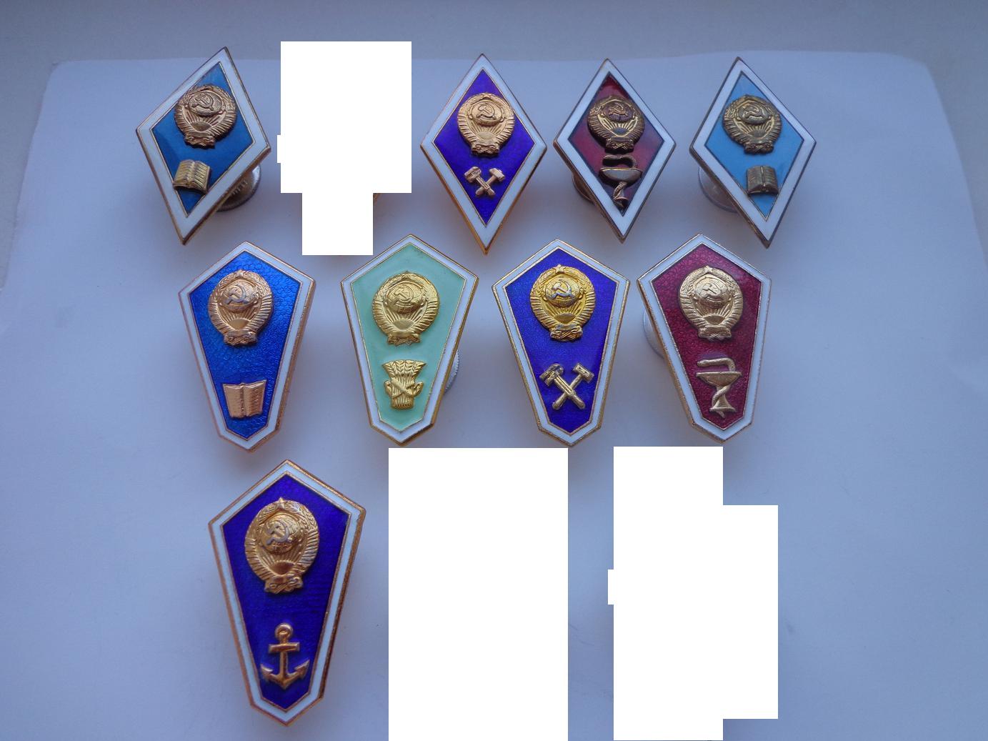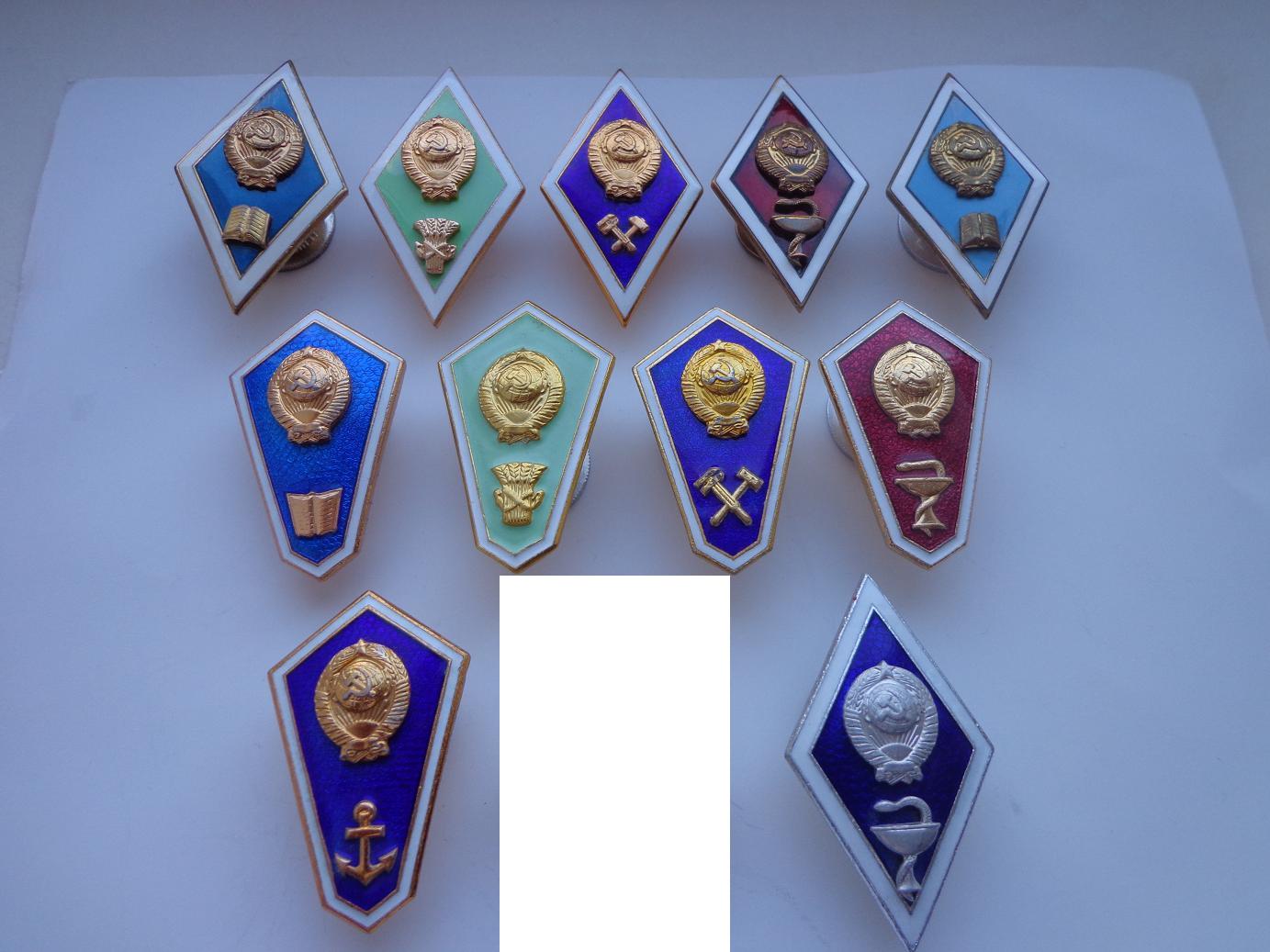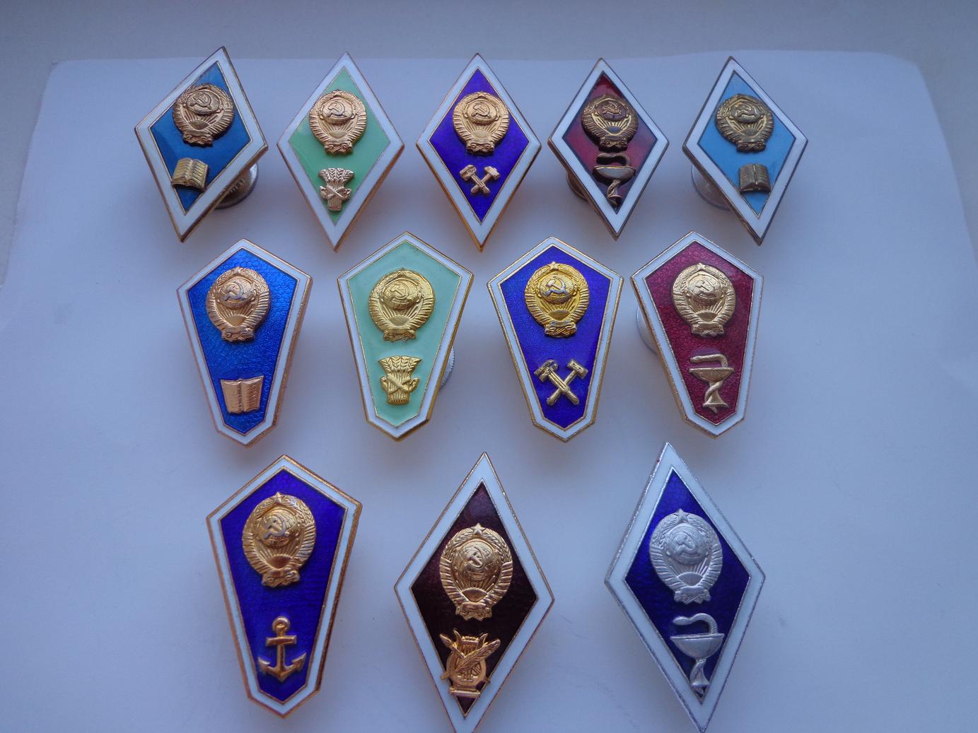 Ромбики гражданских учебных заведений, в т.ч. знаки за окончание МВТУ и института нефти, горного института, ФЗУ, прибалтийские школьные жетоны, знаки об окончании техникумов "гробики", ромбы лесной охраны