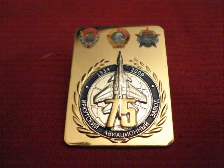 Иркутский авиационный завод-75 лет.Тяжёлый знак на цанге.Разм.26на35мм.Фиксированная цена 150р.