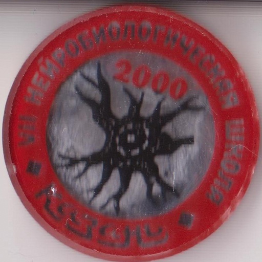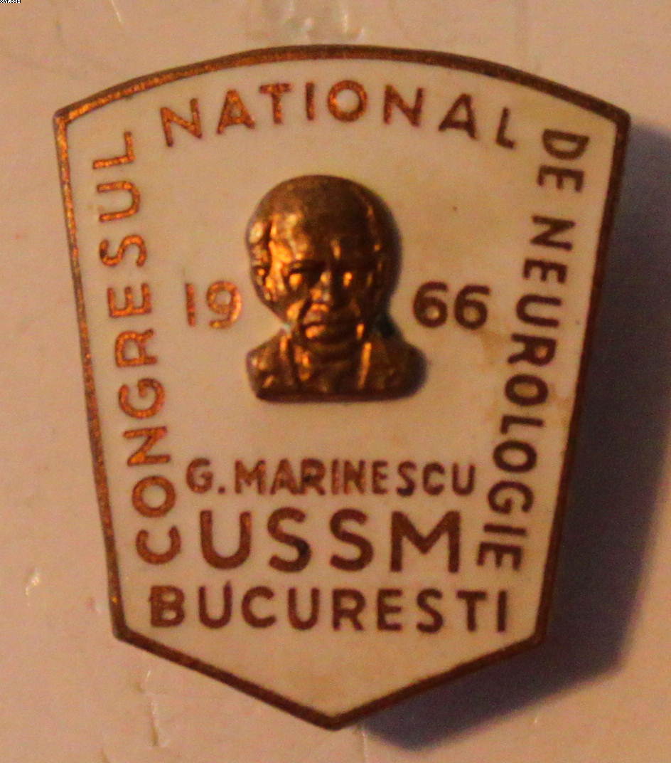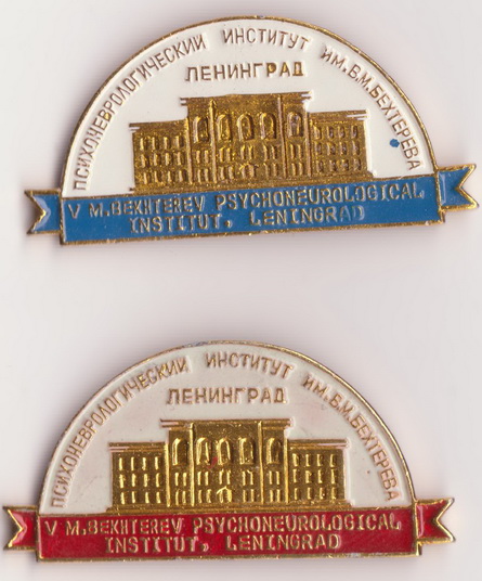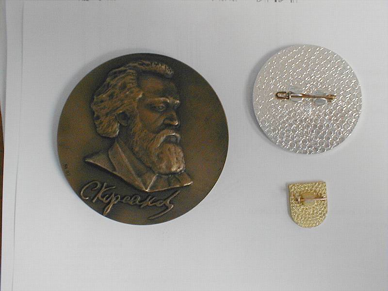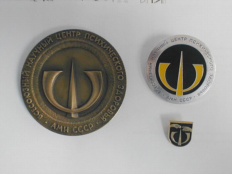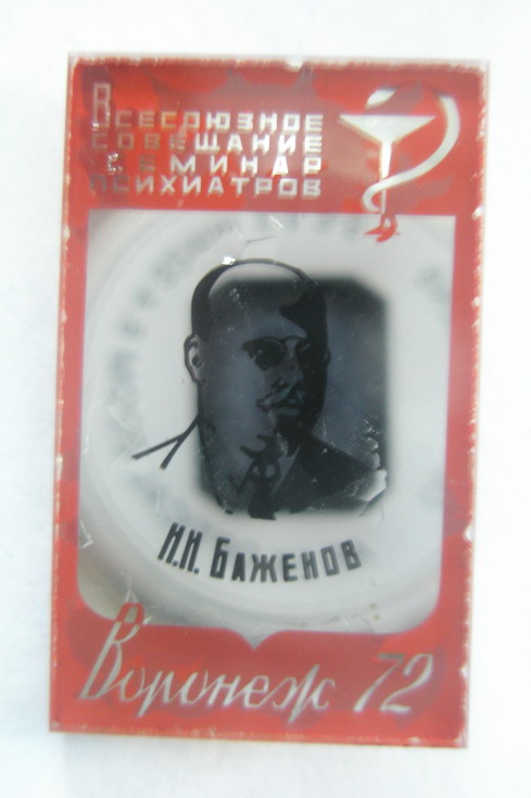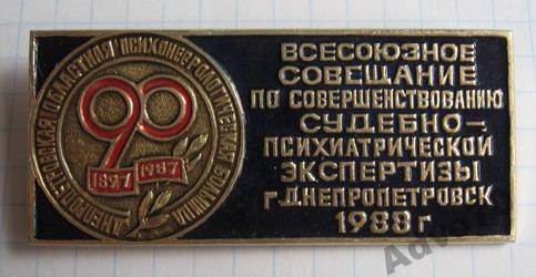 Она гласит V М.еждународный С.ъезд ПО ПР.облемам Д.ушевных Б.олезней. Ну а даты и место читаются легко. Знак на финифте, крепеж - простая иголка. Можно поздравить с удачей нас с доктором Поляковым из Питера.