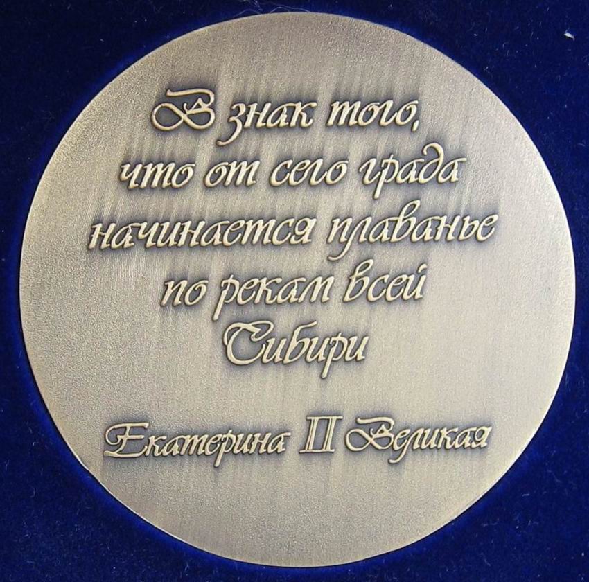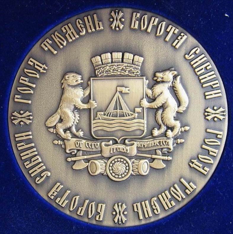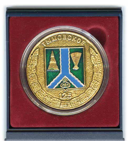 Памятная НАСТОЛЬНАЯ медаль "ТЫМОВСКОЕ – 125 ЛЕТ" (с гербом Тымовского района 2001 г.) (Сахалинская область)