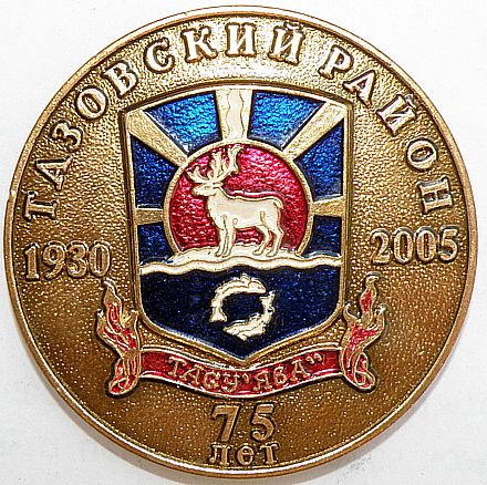 Памятная НАСТОЛЬНАЯ медаль "ТАЗОВСКИЙ РАЙОН – 75 ЛЕТ" (с гербом района 1998 г.)