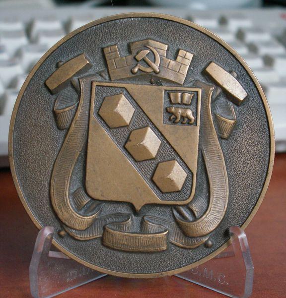 Памятная НАСТОЛЬНАЯ медаль (с гербом города Ханты-Мансийского АО- Югра, 1995 г.)