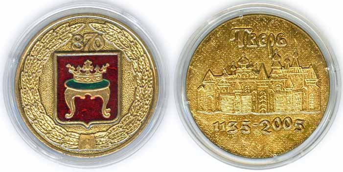 Памятная НАСТОЛЬНАЯ медаль "ТВЕРЬ – 870 ЛЕТ" (с гербом города 1999 г.)