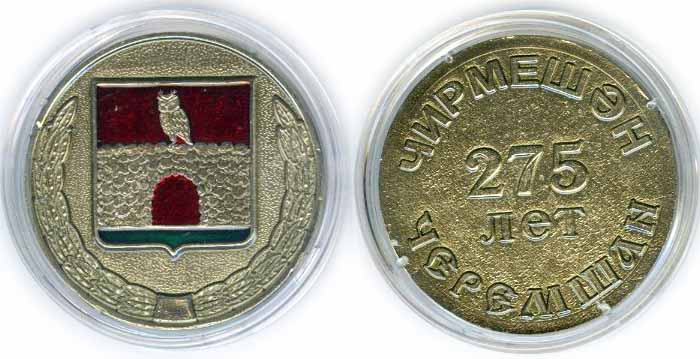 Памятная НАСТОЛЬНАЯ медаль "ЧЕРЕМШАН – 275 ЛЕТ" (с гербом Черемшанского муниципального района 2005 г.) (Республика Татарстан)