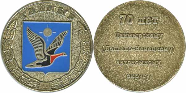 Памятная НАСТОЛЬНАЯ медаль "ТАЙМЫРСКОМУ (ДОЛГАНО-НЕНЕЦКОМУ АВТОНОМНОМУ ОКРУГУ – 70 лет»" (с гербом 1998 г.)