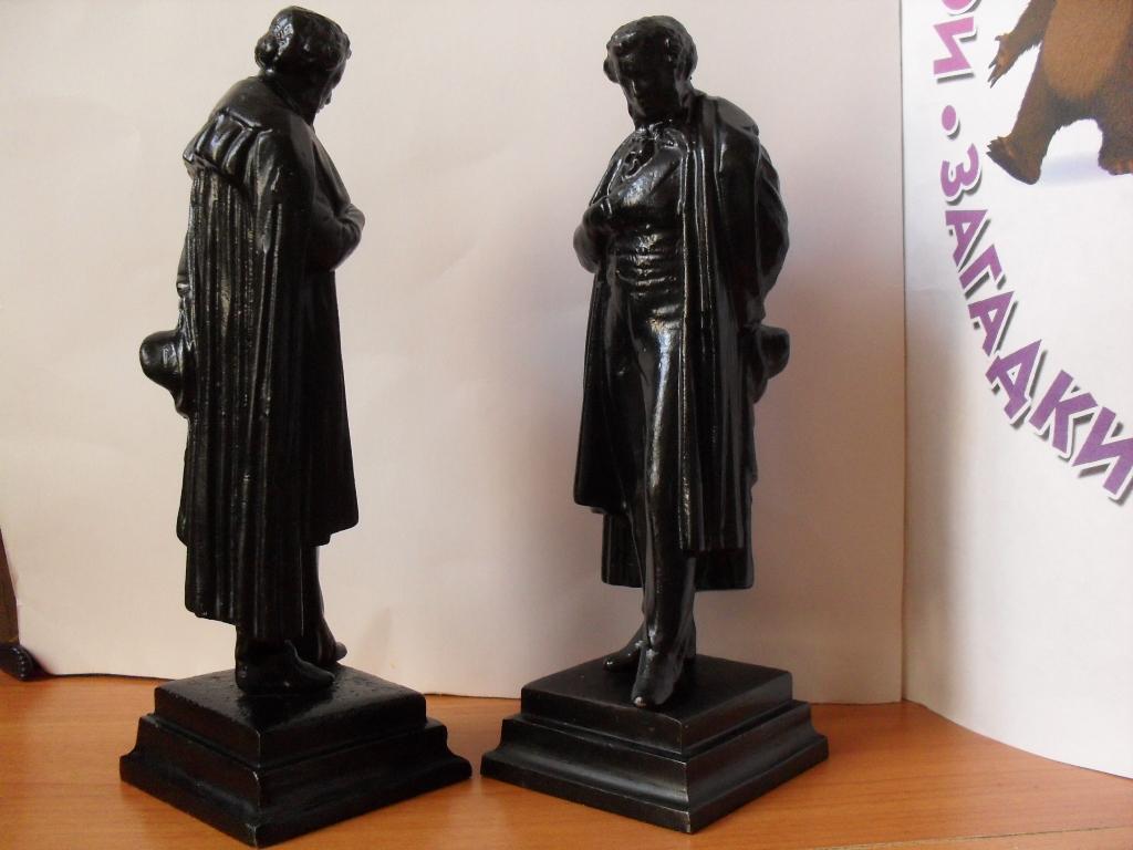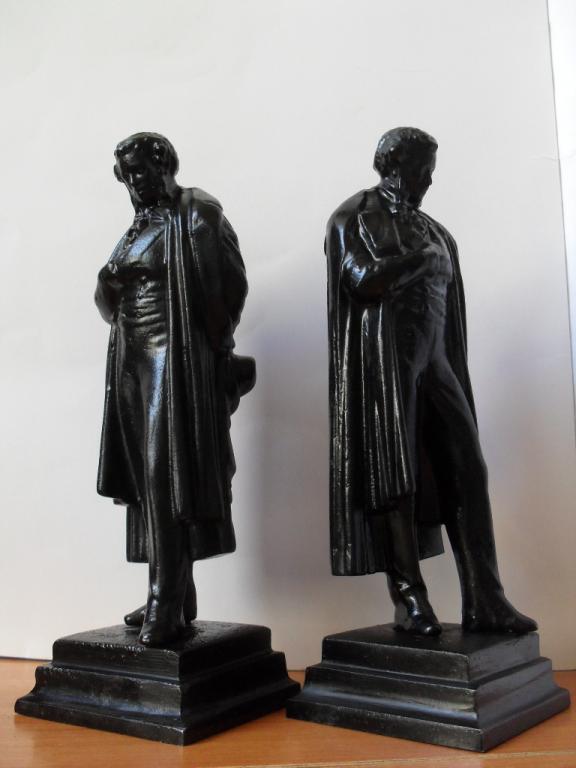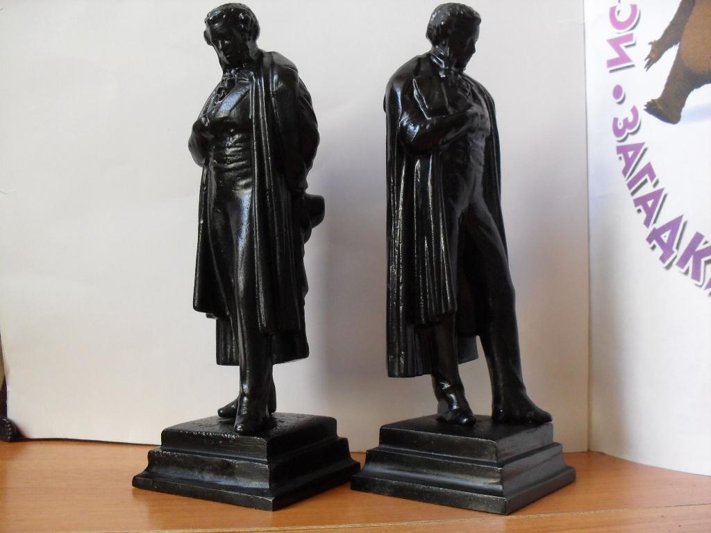 Пушкин.Касли.1985г.у второго 1984 г(плохо читается).Состояние отличное.Любой на выбор. Материал: Чугун — Голландская сажа Автор: н/а (по модели А.М. Опекушина) Год создания модели: 1960-е гг. Габариты: 190х60х60 Вес: 1,16 кг. Модель скульптуры "А.С. Пушкин" выполнена в 1960-е (?) гг. и является уменьшенной копией памятника работы А.М.Опекушина, открытого в Москве в 1880 г. Пушкин Александр Сергеевич (1799 - 1837) - великий русский поэт и писатель. Кудрявый мужчина с пышными бакенбардами, в расстегнутом сюртуке и широком плаще, образующем сзади густые вертикальные складки, стоит, заложив за борт жилета ладонь правой руки и отведя за спину левую руку со шляпой. Подставка квадратная, ступенчатая., с углубленной надписью: "А.С. Пушкину". Каслинский завод отливает скульптуру с 1960-х гг.