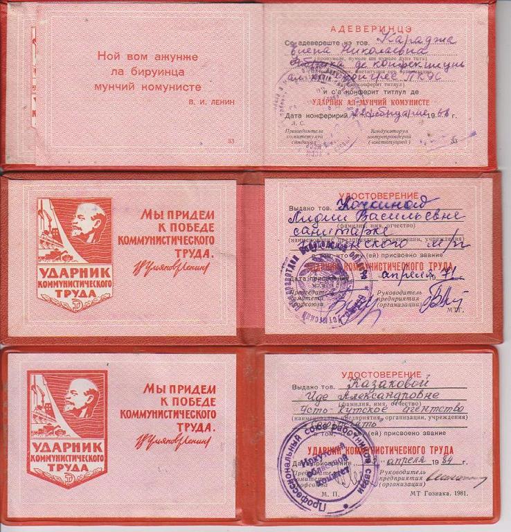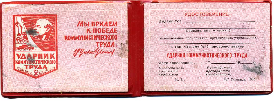 Для рабочих, служащих и колхозников, которым присвоено звание ударника коммунистического труда, введён единый З. о. н. "Ударник коммунистического труда" (постановление Президиума ВЦСПС от 23 сентября 1966, "Справочник профсоюзного работника", М., 1969).