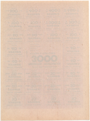 Купонная карточка Республики Узбекистан номинальной стоимостью 3000 купонов выпуска 1993 года. Размеры: 211 х 283 мм. Без особых замечаний.