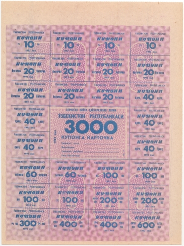 Re: 3000 купонов 1993 г. / Купонная карточка / Узбекистан