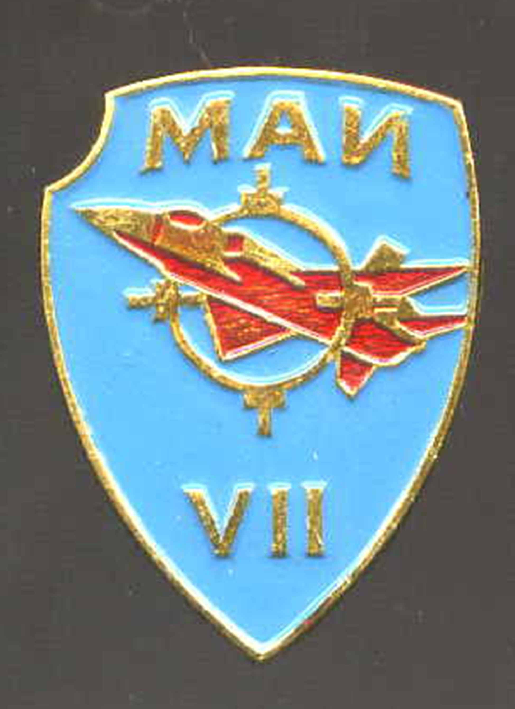 Маёвцы - ведь те ещё патриоты :) - в хорошем смысле слова: на подавляющем большинстве институтских знаков есть или симовлика института (маёвский щит) или просто надпись "МАИ" :))) Да и при утверждении эскизов знаков, как понимаю (моя версия), в административных/партийных/комсомольских структурах этот момент (наличие символики института) играл свою положительную роль.