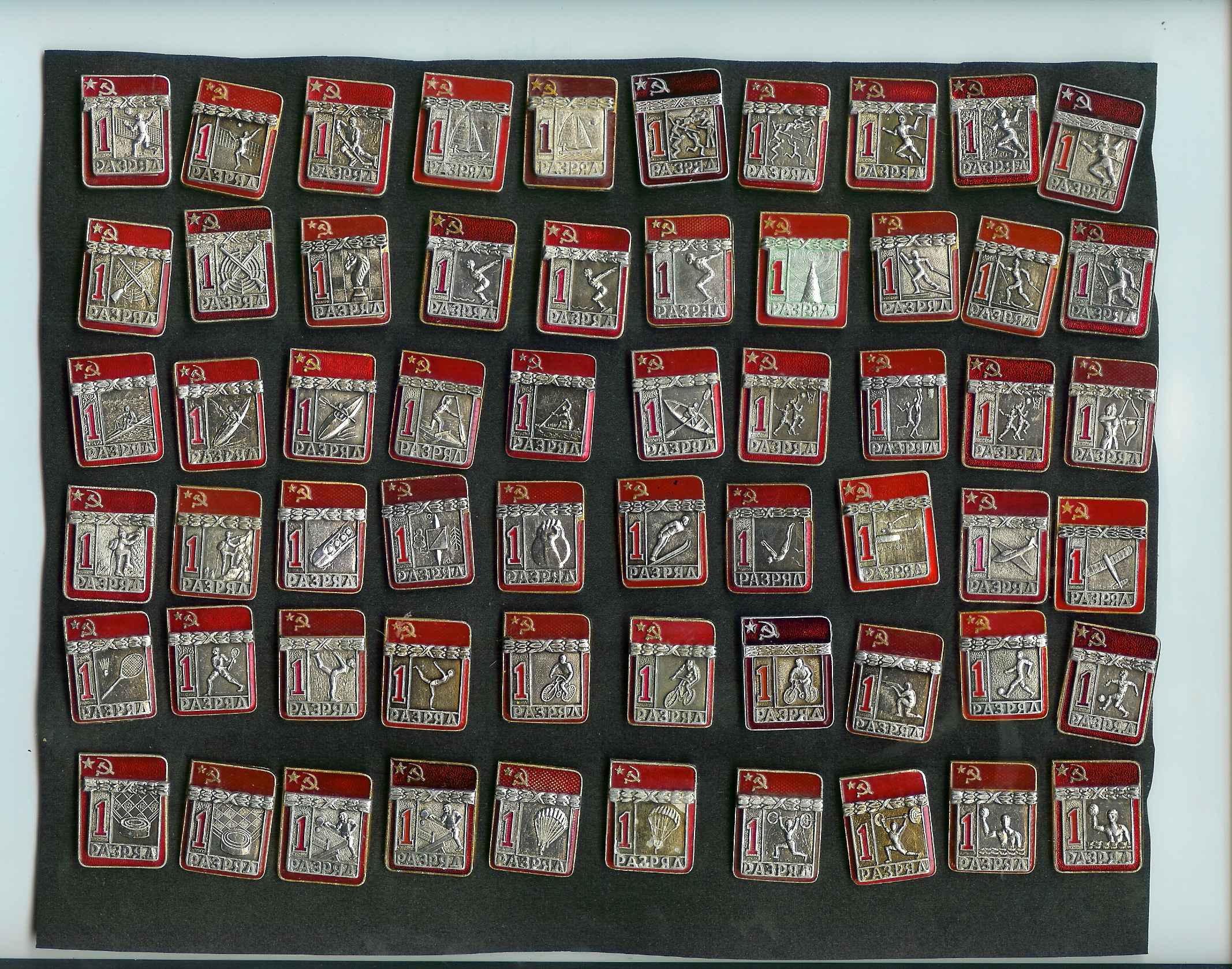 По данным на середину 80-х годов, основными производителями 1-х разрядов [клейма-СФС, ВХО, ФСЗ, ЗСЗ, ЗХЛ и т. д.] было выпущено примерно 200 видов накладных знаков с принципиальными отличиями. Но наибольший интерес представляют пробные партии, выпускаемые маленькими тиражами. Некоторые виды спорта нашли своё воплощение только в этих выпусках. Также редки значки, выполненые непрофильными предприятиями, особенно если они находились, не на территории РСФСР, а в братских республиках СССР.