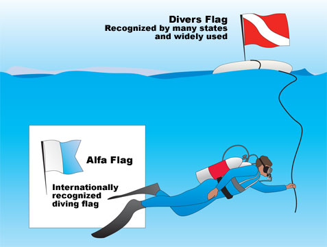 И вот из Википедии: http://ru.wikipedia.org/wiki/%D0%94%D0% ... 0%B0%D0%B3Дайв-флаг — морской флаг, предназначенный для предупреждения окружающих о том, что с судна, вывесившего этот флаг, осуществляются подводные спуски. Используется также на маркерных буях, буксируемых дайверами. В настоящее время общеупотребим флаг в виде прямоугольного или квадратного полотнища красного цвета с диагональной белой полосой, пересекающей полотнище из верхнего левого угла до правого нижнего. Ранее для обозначения водолазных работ использовался флаг «альфа» международного свода сигналов.