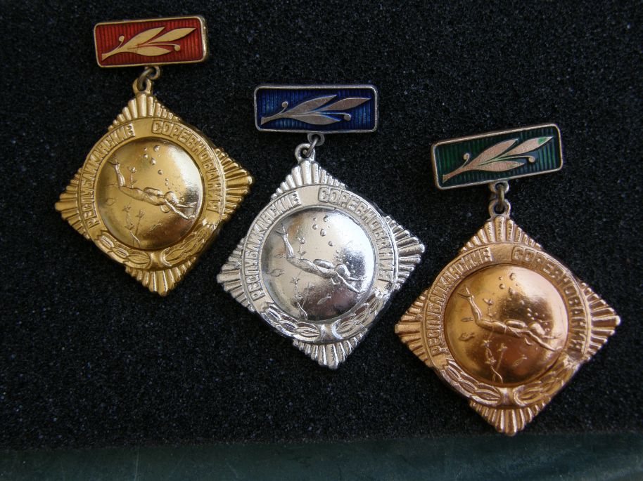 Это значки одного спортсмена ! Он просто нырнул ПЕРВЫМ , а вынырнул ВТОРЫМ !Papa-vodolaz писал(а) :Разумеется, знаки наградные...