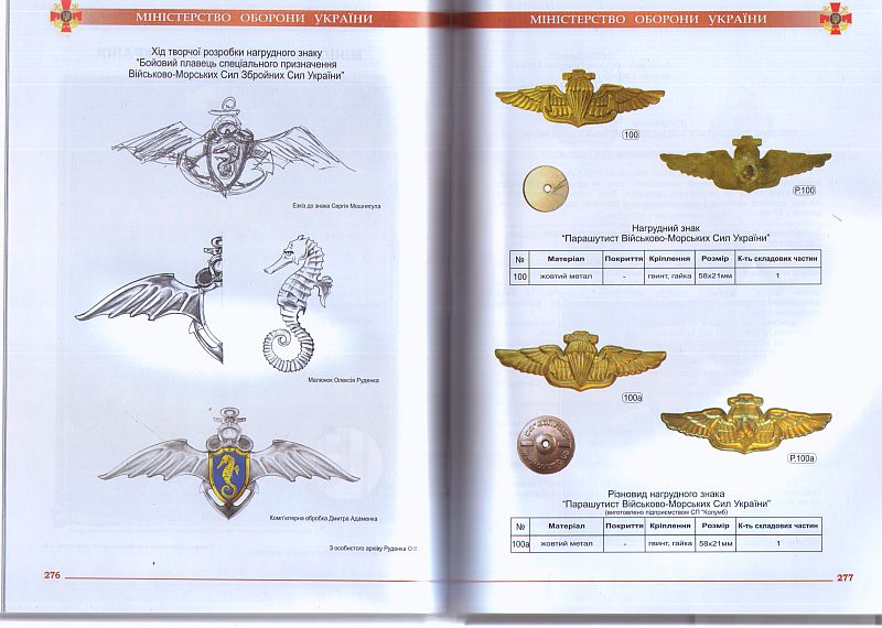 В книге судя по скану их два. Но книги у меня нет, только пару сканов.Subwhiskey писал(а) :А ссылка на приказ Министра Обороны Украины на этот знак парашютиста ВМФ имеется в брошюрке тоже? Я ищу подтверждение приказом МО. Кстати это уже 3 версия знака ( по работе).