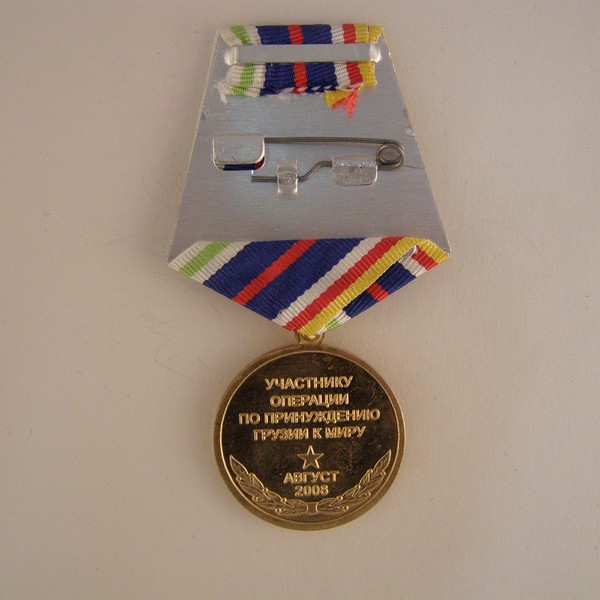 и памятными знаками от 14 августа 2008 г. № 26 учреждена общественная медаль «За принуждение к миру».
