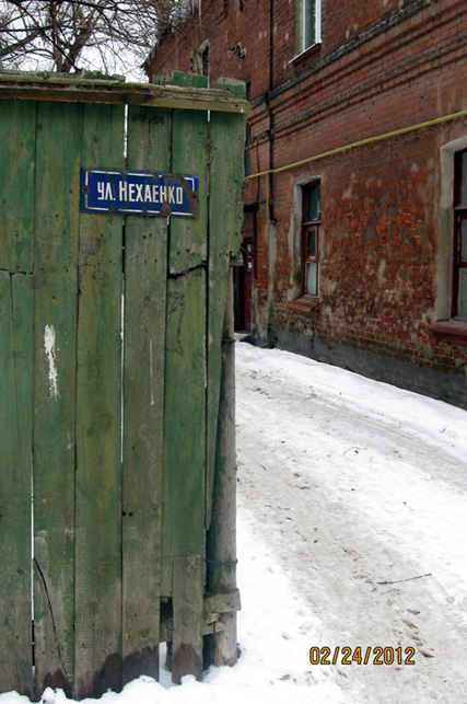 Прошло еще два дня. Сегодня 24 февраля 2012 года, пятница. Я взял портфель, положил в него зеленую папку, фотоаппарат и отправился на улицу Нехаенко. Наконец-то после долгих холодов потеплело. Снег стал мокрым. Дети возле моего дома лепили снеговика. По асфальту текли ручьи талой воды.