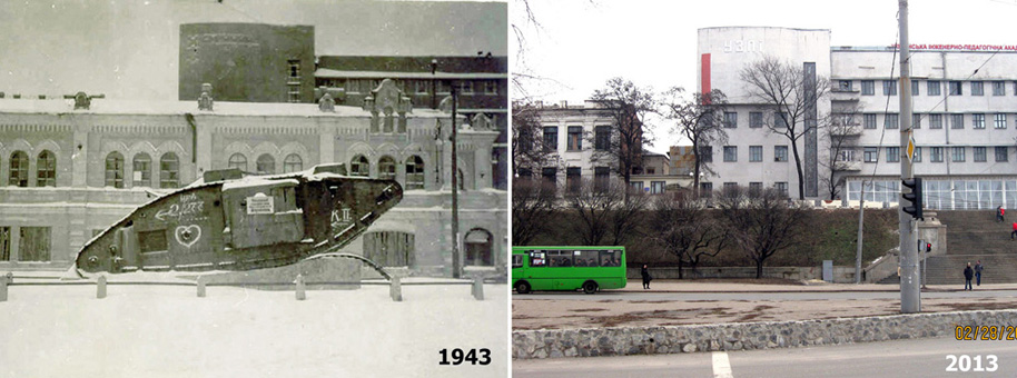 Продолжаю выставлять снимки Харькова, сделанные с интервалом в 70 лет. Ориентиром является здание УЗПИ (Украинского заочного политехнического института), которое сохранилось до наших дней.