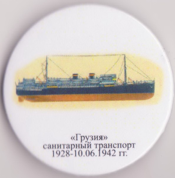 Пароход "Абхазия", построен на Балтийском заводе в 1928 году - из серии грузопассажирских пароходов типа "Аджария" (о них подробно тут). В войну был санитарным транспортом. Последний пароход, успевший вырваться из осаждаемой немцами Одессы. Погиб от авианалета 6 октября 1942 года.