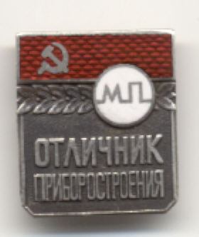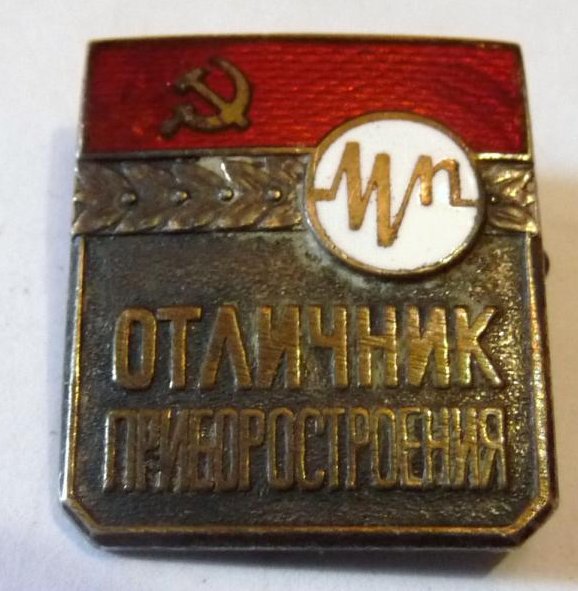 Когда-то существовало Министерство машиностроения и приборостроения (до МП). На значке отличника соцсоревнования оного ведомства приборостроительная часть была представлена не осциллограммой, а часовым циферблатом. Может это ищет Ваш товарищ? (знак из сети):bye:Юра писал(а) :Вторгаюсь не в свою тему, но хочу уточнить один момент.