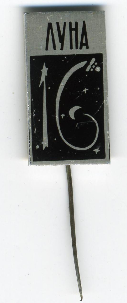 X.39. Правильный пятиугольник со стороной 5 мм. В центре размещена надпись: «СССР». Значок символизирует доставленный на Луну вымпел. Томп. Игл.