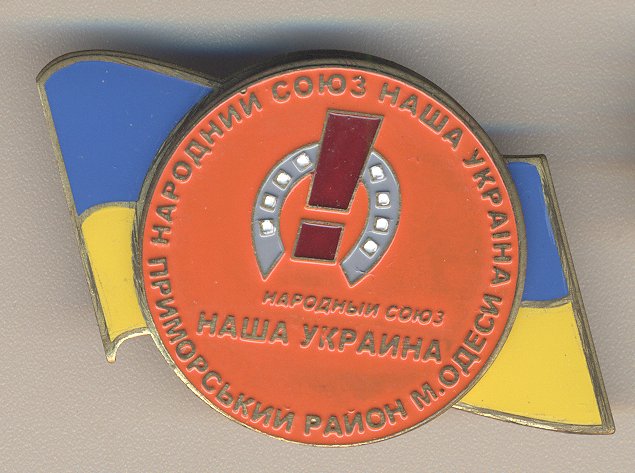 "Наша Украина" Приморский район г.Одессы (здоровенный знак, диаметр 30мм, макс ширина 55 мм! Латунь)