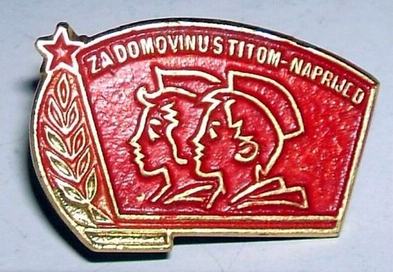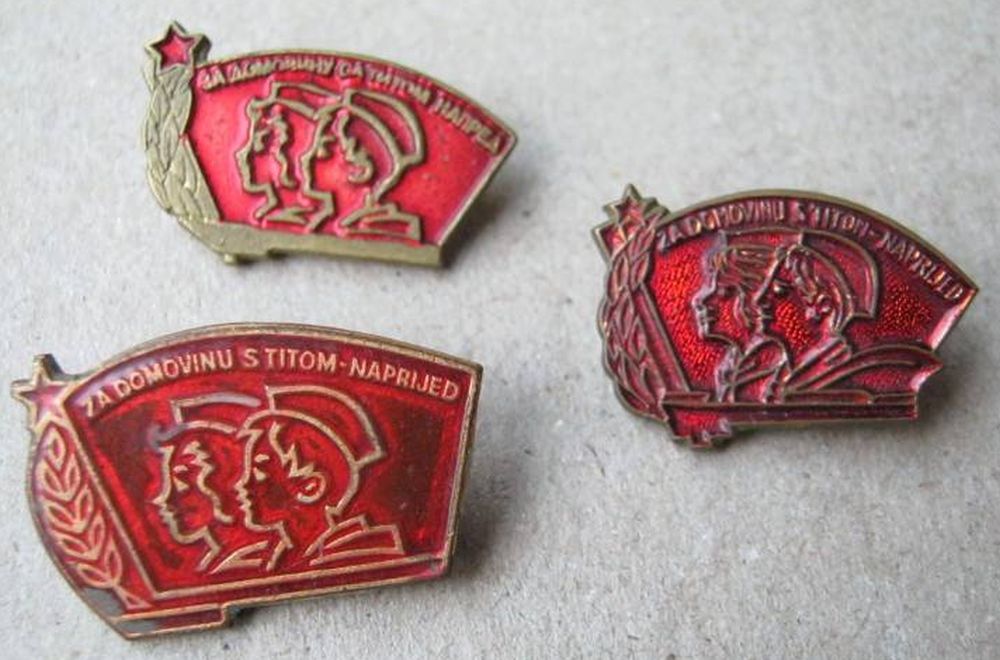 Девиз "За домовину с Титом напред" (За Родину, с Тито, вперед), встречается на знаках Югославских пионеров на разных языках:nasa_astronaut писал(а) :Такие же как и нижний пластмассовый на скане у ув. Анатолич, но металл.Анатолич писал(а) :Нижний пионерский знак из пластмассы.
