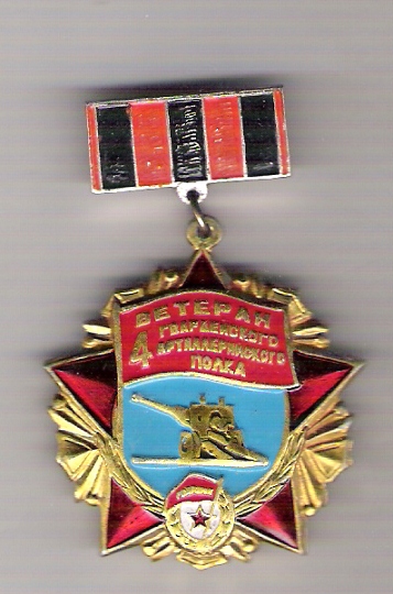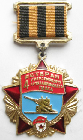 У меня этот знак с другой колодкой и числится как 4 Гвардейский артиллерийский полк 2й Гвардейской Перекопской Краснознамённой ордена Суворова артиллерийской дивизии прорыва ( Части усиления 54 стрелкового корпуса 2й Гвардейской армии ). Если эта информация неточная, то прошу её поправить.