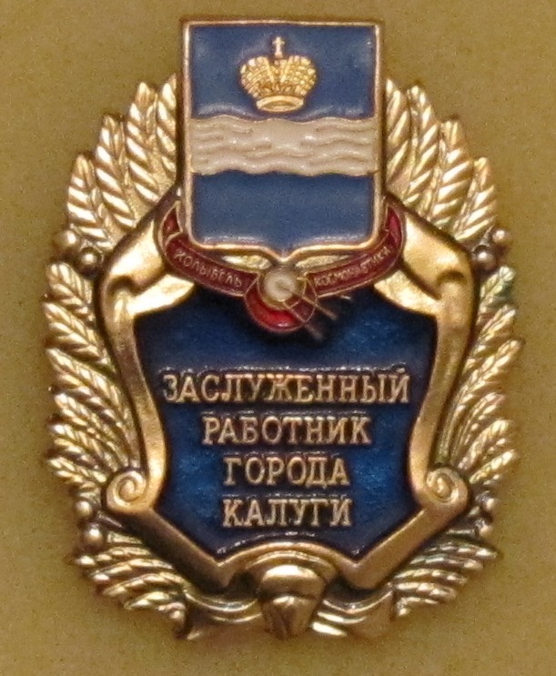 Знак.Заслуженный работник города Калуги.Первый спутник.Колыбель космонавтики. Герб г.Калуги.